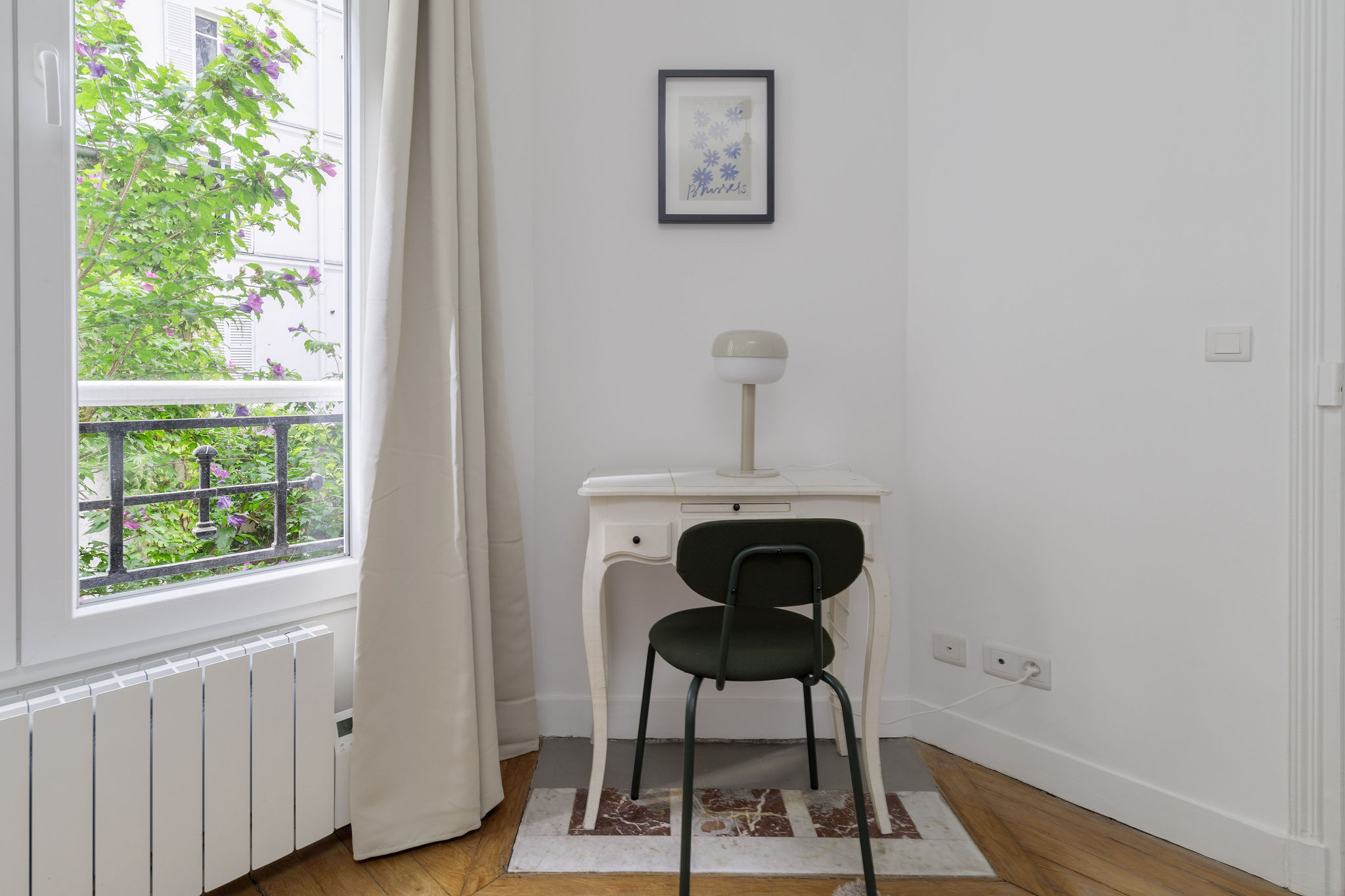 La Suite Guersant est composée d’une cuisine entièrement équipée, de 2 lits queen size, de 1 salle de bain et 1 toilette, d’un canapé lit très confortable, du chauffage, de linge et serviettes ainsi que de produits de toilettes.
